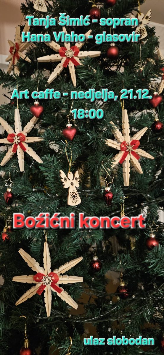 NaslovnicaMAKARSKABožićni koncert Tanje Šimić u nedjelju u Dvorani Arte Božićni koncert Tanje Šimić u nedjelju u Dvorani Arte MAKARSKA 17. prosinca 2025. Udio FacebookTwitterWhatsAppEmailTelegram Ove nedjelje, 21. prosinca, s početkom u 18 sati, održat će se Božićni koncert u Dvorani Arte. Pjevat će sopranistica Tanja Šimić, a na glasoviru će ju pratiti Hana Vlaho. Ulaz je slobodan. M.D.