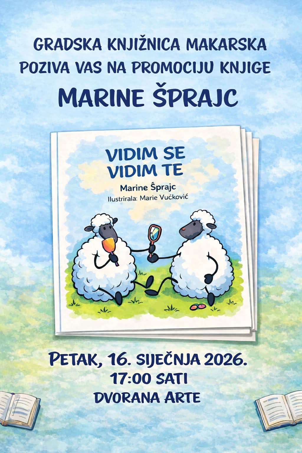 Gradska knjižnica Makarska s velikim veseljem poziva velike i male čitatelje na promociju posebne interaktivne knjige „Vidim se – vidim te“ autorice Marine Šprajc, koja će se održati u petak 16.siječnja s početkom u 17 sati u dvorani Arte.