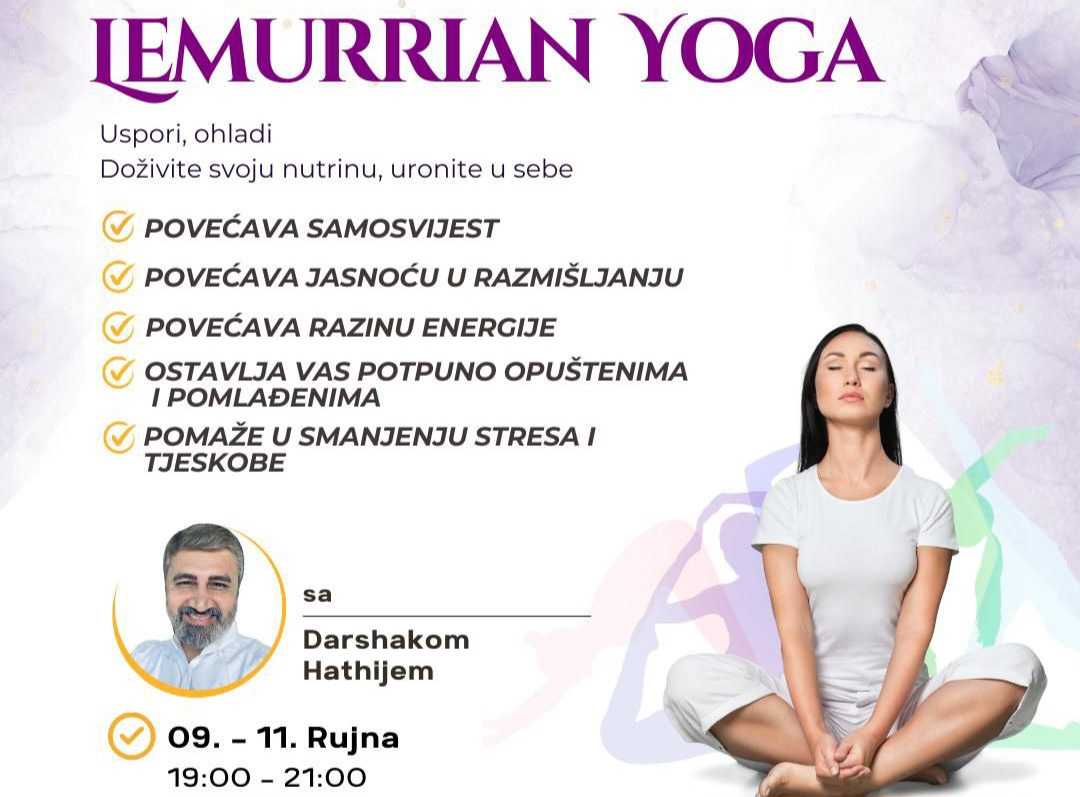 Od ponedjeljka do srijede, u prostoru Happy Yoga Home Makarska na adresi Stjepana Ivičevića 46, u organizaciji Udruge Art of living, održat će se zanimljiv tečaj lemurrian yoge koju će voditi Indijac Darshak Hathi. Riječ je o drevnoj tehnici koju obilježavaju spori i jednostavni pokreti, a za razliku od standardne joge, nema istezanja.