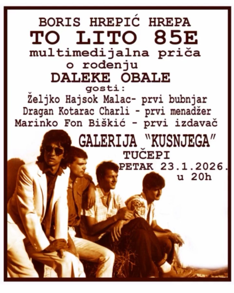 U galeriji KUS Njega u Tučepima ovog petka, 23.siječnja, gostuje poznati splitski glazbenik Boris Hrepić Hrepa, koji donosi ‘To lito 85e’ , multimedijalnu priču o rođenju legendarne Daleke Obale.