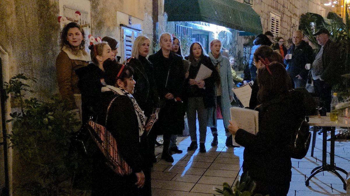 Vokalna skupina FA Tempet u četvrtak navečer pjevanjem kolendi pokušala oživjeti duh starih Božića, započevši posjetom Domu za starije i nemoćne, a potom nastavivši gradskim ulicama i rivom.