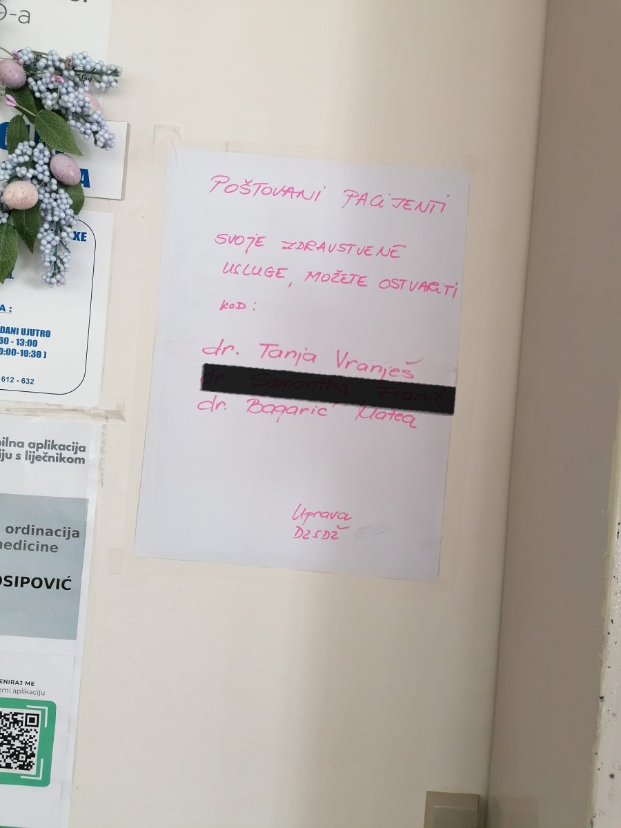 Danas je na vratima ordinacije dr. Matka Josipovića istaknuta obavijest pacijentima kojom konačno dobivaju informaciju o svojem statusu.