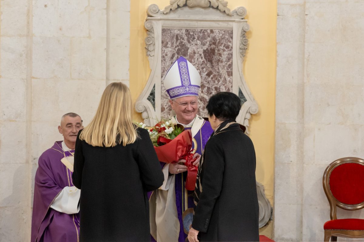Na kraju mise okupljenima se obratio župnik don Jure koji je zahvalio nadbiskupu na tradicionalnom božićnom pohodu župi i katedrali te istaknuo da je njegova riječ i prisutnost bila snažno ohrabrenje vjernicima. Posebno je izdvojio nadbiskupovu misao da je strpljivost aktivna krepost, te je izrazio nadu da će zajednica ustrajati u vjernosti Bogu.