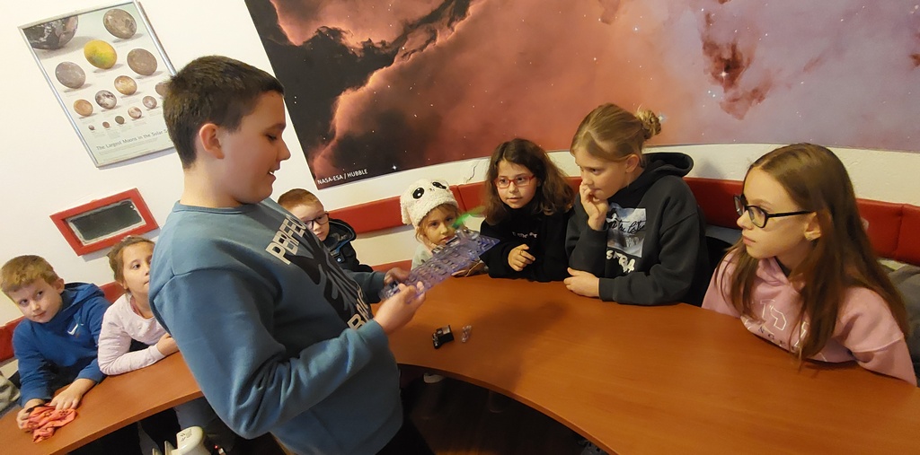 Djeca su s velikim zanimanjem pratila predavanje o maglicama u svemiru, mjestima u kojima nastaju zvijezde, kao i razgovor o budućnosti Sunca. Kristijan je održao kratku prezentaciju o svemirskim putovanjima, sastavnim dijelovima raketa i principima elektro-pogona, čime je otvorena i glavna tema ovogodišnje škole – povratak ljudi na Mjesec kroz misije Artemis.