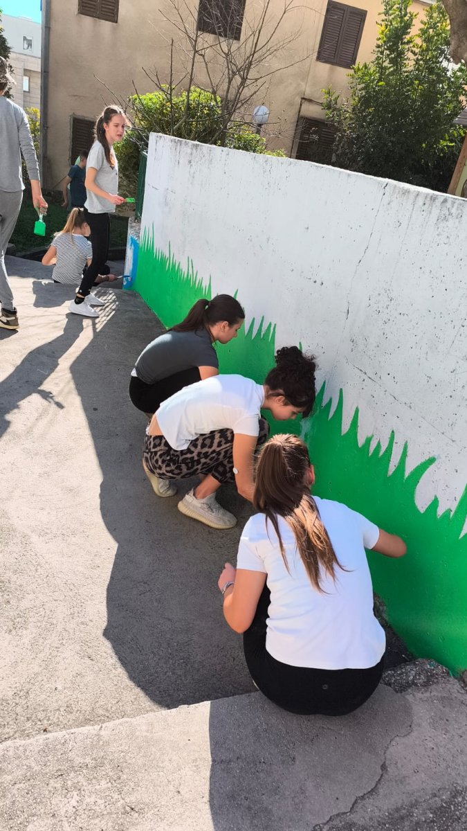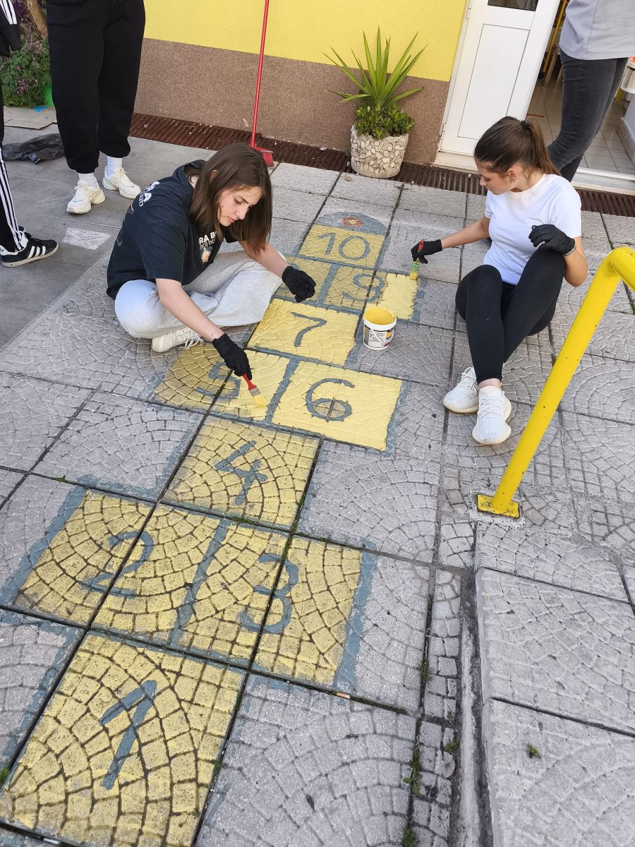 Učenici su, vođeni željom da pomognu zajednici, proveli sunčano poslijepodne volonterski oslikavajući dvorište dječjeg vrtića.