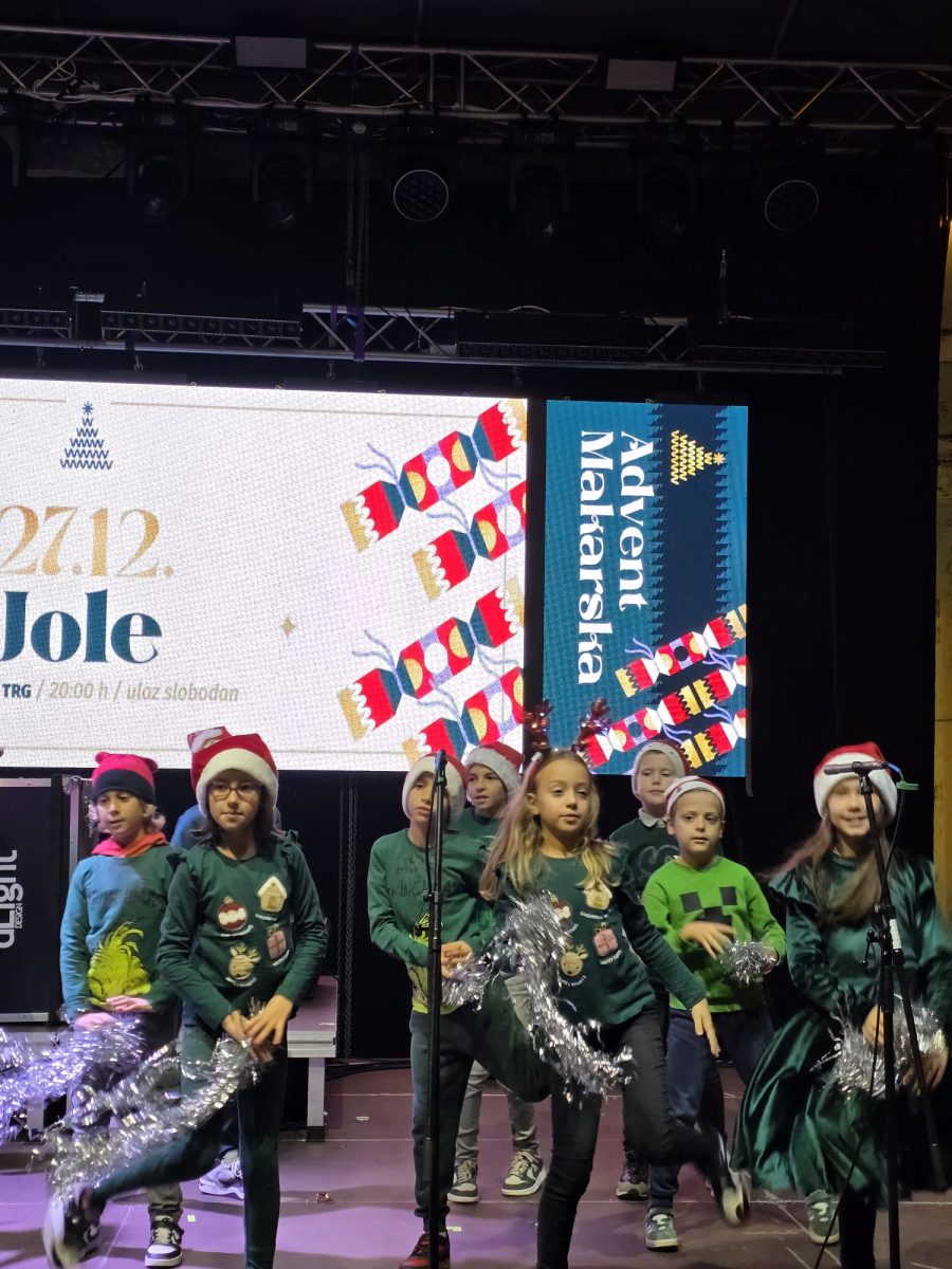 Nastupila je Divna Šulenta te školska klapa Biokovo s Kyrie Eleison, a Božić u mom srcu izvele su Ena Horvatović, Ivana Olah i Ema Govorko (Katarina Jerčić). Josip Isović pjevao je Let it snow, a za kraj je školski zbor izveo Jingle Bell Rock.