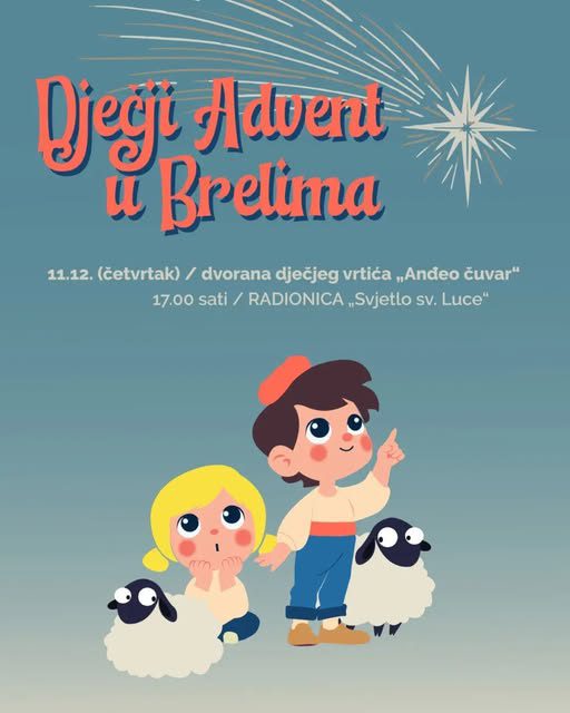NaslovnicaRIVIJERABrelaOvog četvrtka u Brelima radionica "Svjetlo sv. Luce" Ovog četvrtka u Brelima radionica “Svjetlo sv. Luce” Brela 10. prosinca 2025. Udio FacebookTwitterWhatsAppEmailTelegram Ovog četvrtka, u sklopu Dječjeg adventa u Brelima, u dvorani Dječjeg vrtića Anđeo čuvar, održat će se radionica “Svjetlo sv. Luce”. Na radionici će djeca moći izrađivati svoje lampione. Početak radionice je u 17 sati. M.D./foto M.D - Oglas -