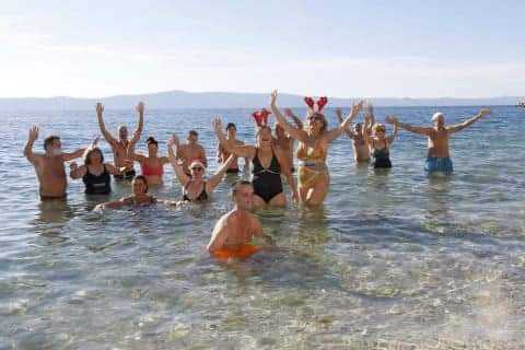 Na Čakljama u Podgori se i ove godine, točnije, jučer, održalo tradicionalno blagdansko kupanje. – K(r)asni kupači, točnije njih šesnaest, se okupalo na Čakljama u moru koje je trenutno 15 stupnjeva! Prijašnjih je godina imala i humanitarnu notu uz spizu i pjesmu, ali je korona to poremetila ove godine, ali najbitnije da se tradicija nastavila. Svaka čast hrabri ljudi!, izvijestila je Petra Radić, načelnica općine Podgora.