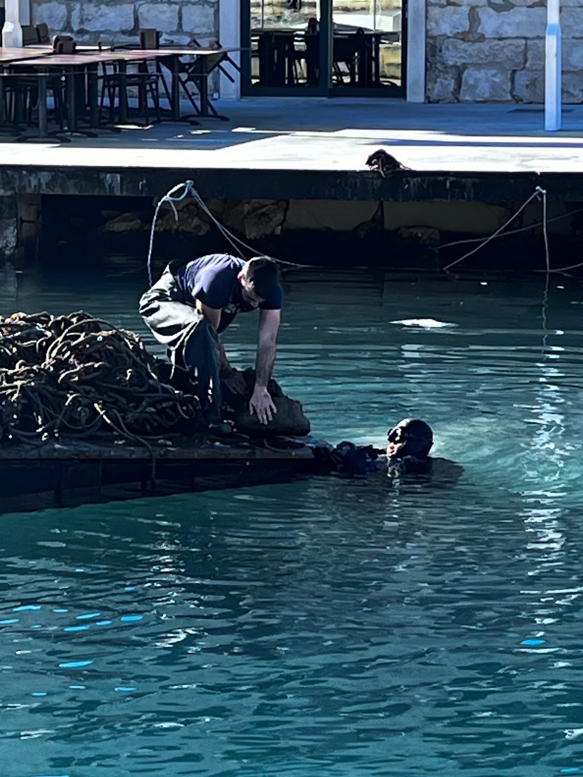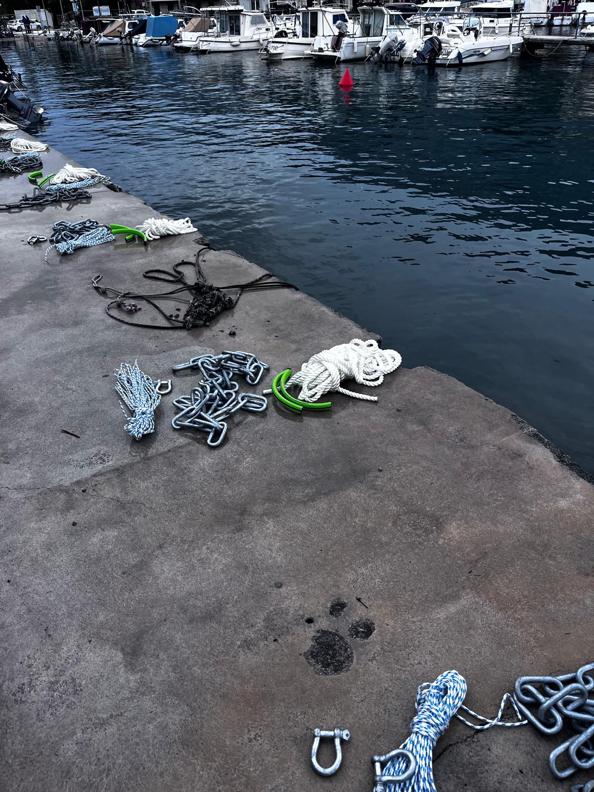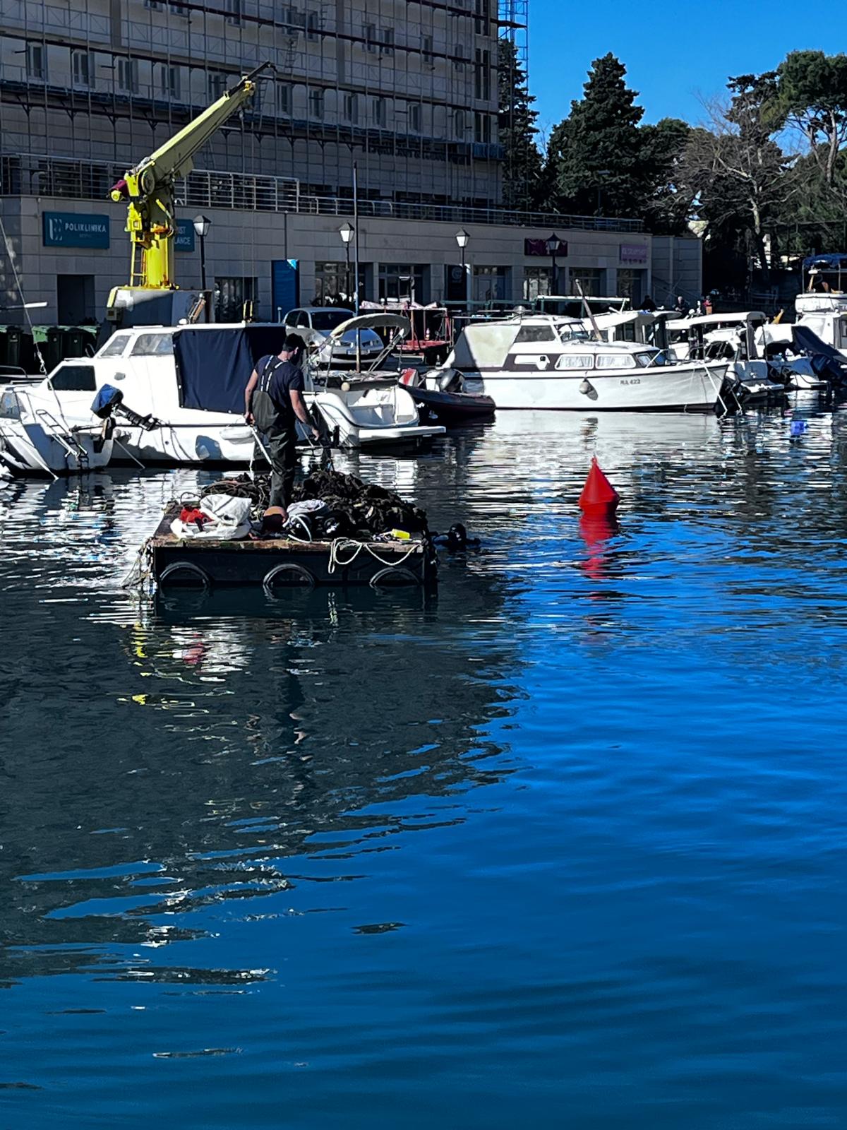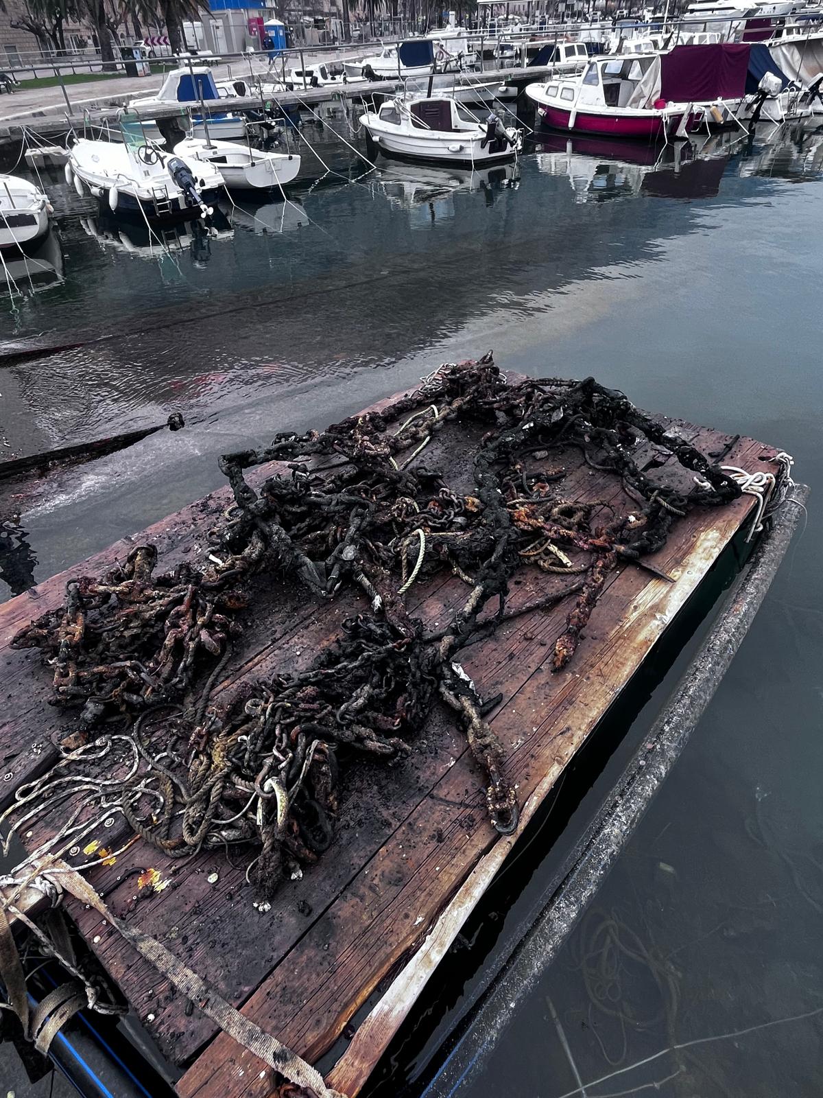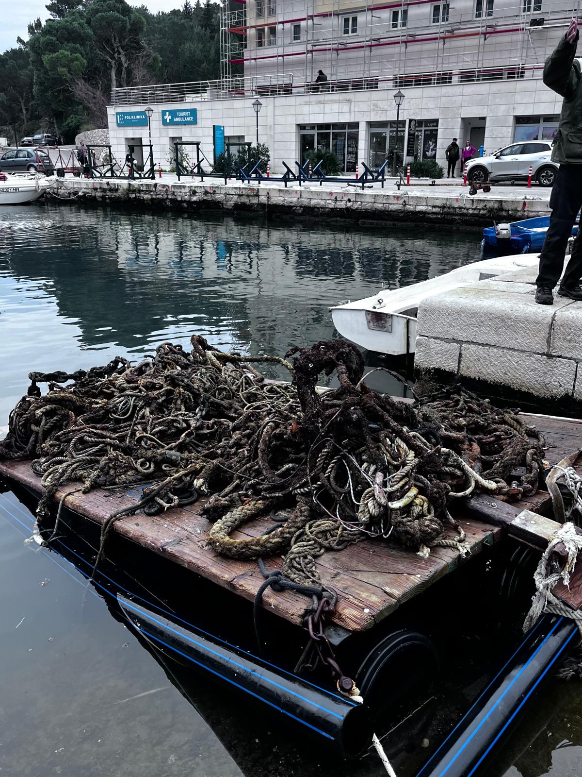 Prema informacijama iz društva, dosad je izvađeno i odvezeno pet do šest kamiona starog materijala. Tijekom godina, dio dotrajalih lanaca i konopa jednostavno se ostavljao ili odbacivao u podmorju, bez sustavnog čišćenja, pa se na dnu nakupila velika količina teškog metalnog i sintetičkog otpada.