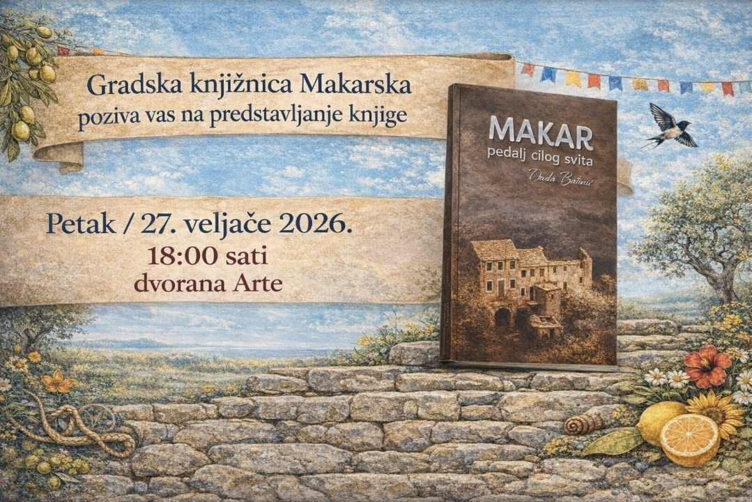 Gradska knjižnica Makarska poziva na promociju knjige „Makar: pedalj cilog svita“ autorice Dade Batinić, koja će se održati u petak, 27. veljače, u 18:00 sati, u dvorani Arte.