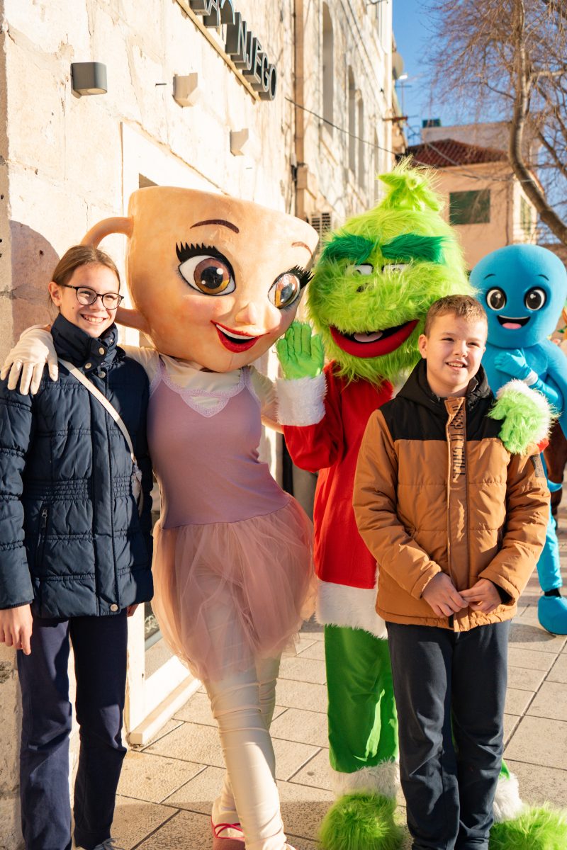 Maskote su neumorno plesale, pozirale za fotografije i širile veselje, pretvarajući Kačićev trg u mjesto iskrene dječje sreće i toplog obiteljskog zajedništva.