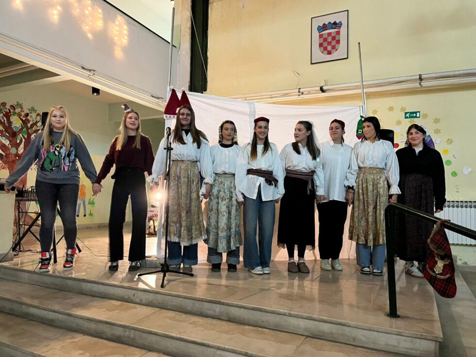 Malo blagdanskog sjaja na školsku pozornicu donijele su i učenice Petra, Lucija, Kate, Patricija, Petra, Perina, Klara i Lucija koje su se okušale u glumi kazališta sjena i donijele igrokaz Iđe Mare ča. Svojom su izvedbom živopisno pokazale kako je nekad izgledalo korteđavanje u selu Makru. I naravno, naš šećer na kraju…Zbor nastavnika nikad neće iznevjeriti našu publiku pa su se ove godine uz pjesmu i ples predstavili pjesmom Sretan Božić svakome. I tako je našoj priredbi došao kraj. Uz pomoć naše knjižničarke Tamare Buvinić i profesorice Dražane Filipović priuštili smo našim učenicima i profesorima trenutke koji su školu ispunili smijehom, ljubavlju i radošću, poručili su iz Srednje škole fra Andrije Kačića Miošića.