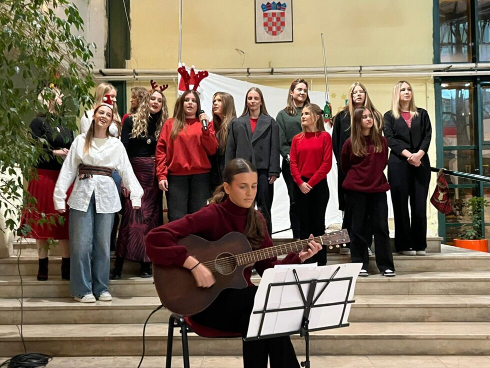 – Pokazali smo da se zajedničkim radom mogu stvoriti prekrasne uspomene pune ljubavi, mira, blagostanja i sreće. Voditeljice Sanja Topić i Matea Šimić prvo su najavile učenice naše škole, Luciju, Nikolinu i Anu, koje su otpjevale pjesmu Zdravka Čolića Kuća puna naroda. Božićna recitacija Sveta noć bila je u interpretaciji učenice Petre Okmažić. Prekrasnu izvedbu Bijeli Božić grupe Dalmatino kao i pjesmu Doris Dragović Malo mi za sriću triba uspješno su otpjevale učenice drugih i trećih razreda koje je na gitari pratila učenica Ana Antunović. A da naša škola ima još glazbenih talenata pokazao je i Filip Pelegrin Čizmić koji je na gitari otpjevao pjesmu The fairytale of New York grupe The Poques.
