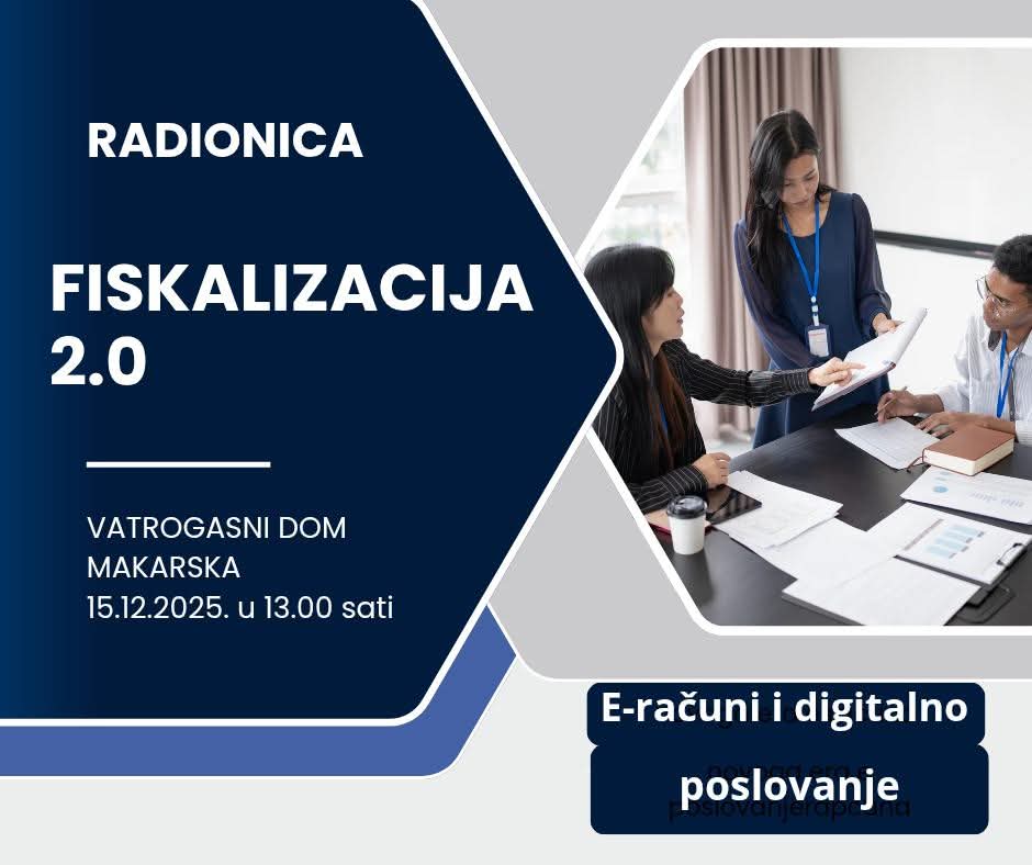 Obrtnička komora Makarska poziva obrtnike i poduzetnike na radionicu „Fiskalizacija 2.0”, koja će se održati u ponedjeljak 15. prosinca 2025. u Vatrogasnom domu Makarska.