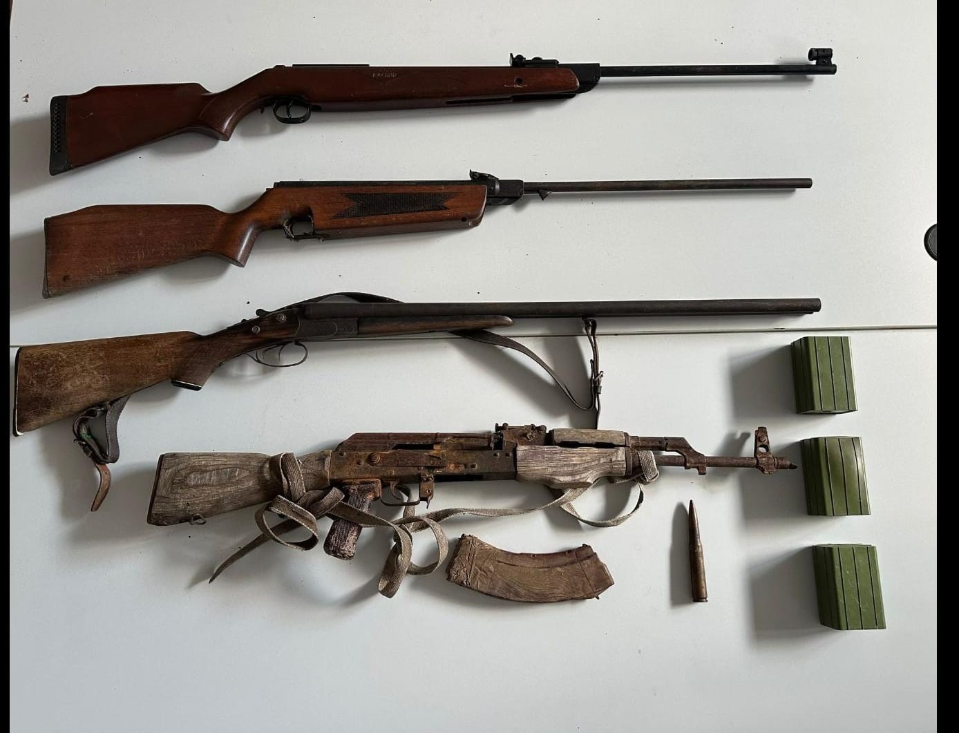 Tijekom kriminalističkog istraživanja obavljena je pretraga kuće i drugih prostorija koje koristi osumnjičeni, kojom su prilikom pronađeni i privremeno oduzeti automatska puška s pripadajućim spremnikom, tri komada trotilskog metka (eksploziva) težine po 500 grama te jedan metak – streljivo za teško naoružanje. Navedeno oružje i streljivo spadaju u kategoriju „A“, čije je posjedovanje građanima zabranjeno.